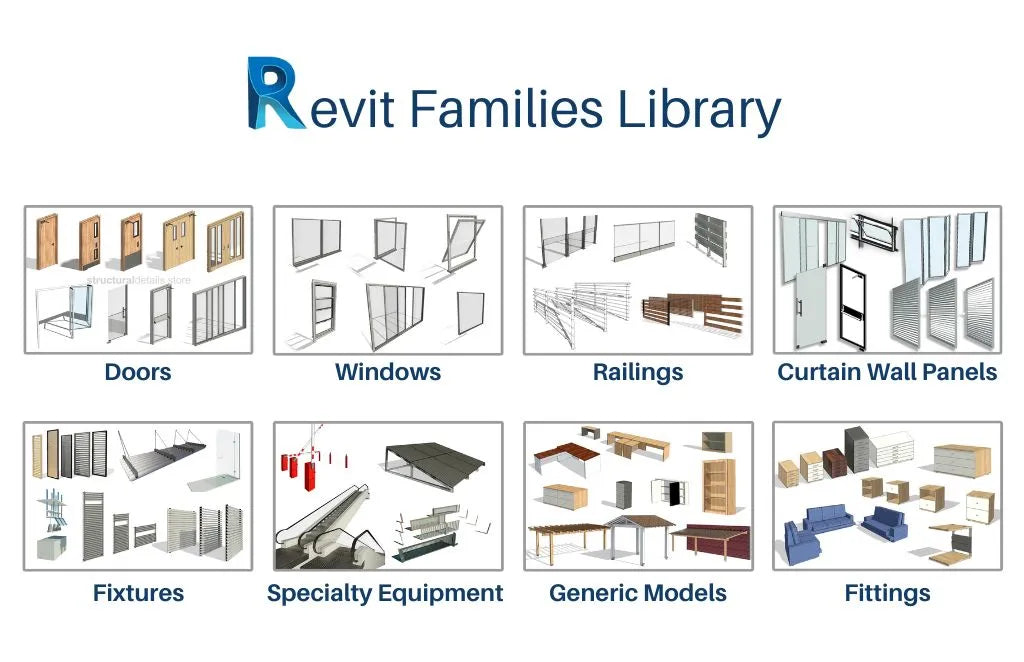 Comprehensinve collection of fully parametric Revit families, to use in any part of your design projects.